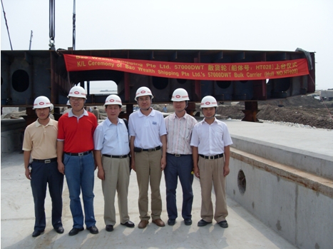 2008年8月16日,在新韓通船舶重工有限公司的1號(hào)船臺(tái)舉行了57000噸散貨輪hull NO.:HT028即新韓通首制船的上船臺(tái)儀式,該船為BAO WEALTH SHIPPING PTE.LTD建造,入LR級(jí),是該船東在新韓通建造3艘系列船的首制船。上午九點(diǎn)五十八分,整個(gè)船臺(tái)彩旗飄飄、鞭炮齊鳴,杭友斌常務(wù)副總經(jīng)理率全體員工和船東劉庚寶董事長(zhǎng)、周國(guó)東副總經(jīng)理以及LR船級(jí)社的代表共同見證了這一令人鼓舞的時(shí)刻,這是潤(rùn)昌項(xiàng)目建設(shè)進(jìn)程中的一個(gè)里程碑。地方政府領(lǐng)導(dǎo)也趕到現(xiàn)場(chǎng)表示祝賀。