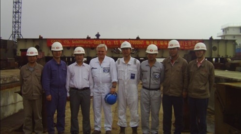 9月18日上午10點(diǎn)18分,我司在1#船臺舉行57000DWT散貨船(船體號:HT037)上臺儀式。德國CONTI公司駐廠項(xiàng)目經(jīng)理Mr. Andrzej Olechnowicz,LR船級社李金龍先生、孫凌峰先生,新韓通重工總經(jīng)理杭友斌先生等出席儀式。