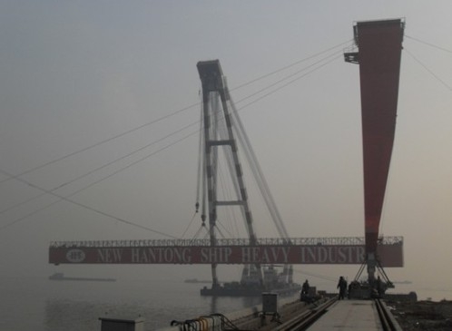 上午9點28分,公司在一號船臺2#線舉行57000噸散貨船(船體號:HT038)上船臺儀式,這是為德國CONTI公司建造的10艘系列船中的第二艘,預計明年年中交船。