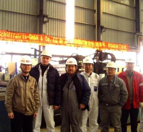 1月26日,新韓通為德國CONTI公司建造的57000噸散貨船(船體號:HT040)在準備車間舉行開工儀式。船東代表MR. Sebastian Franczyk、LR代表李金龍先生、開元公司代表以及新韓通常務副總王友軍先生、副總經理周義慶先生等出席儀式。