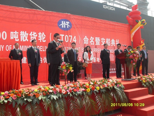2011年5月5日上午10:18,我司為威蘭德建造的第二艘57000噸散貨輪(HT074)在新韓通1號碼頭隆重舉行命名及交船儀式。本輪通過公司全體員工的努力奮斗,在船東駐廠代表和NK船級社的協(xié)助下,經(jīng)過為期一年的辛苦建造,達(dá)到了圓滿交船狀態(tài)。