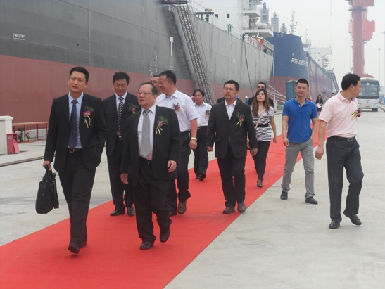 2011年5月30日,我司為寶源國際建造的第三艘57000噸散貨輪(HT084)在新韓通碼頭隆重舉行命名及交船儀式。本輪在公司全體員工、駐場代表及DNV船級社的努力奮斗,經過為期9個月的辛苦建造,達到了交付狀態。