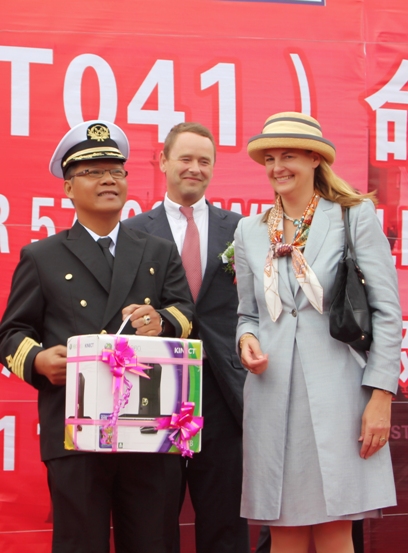 2011年7月14日,我公司為德國(guó)CONTI船東建造第五艘的57000噸散貨輪(HT041)在新韓通碼頭順利舉行命名及交船儀式,該船入LR船級(jí)社。