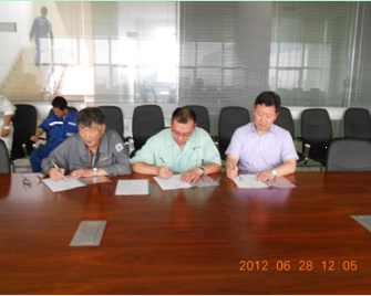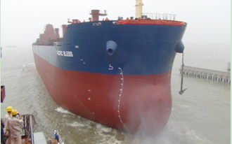 2012年6月28日中午11:58,我司為韓國現代船東建造的第3艘57000噸散貨輪(HT57-112),在新韓通1#船臺順利下水,該船入KR船級社。儀式結束后,三方代表共同簽署節點文件,并舉杯歡慶合影留念。