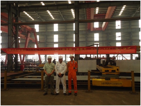 2014年6月6日,新韓通為Kmarin船東建造的64000噸散貨輪(HT64-124)成功舉行開工儀式,新韓通總經理助理圣衛兵及船東船檢參加本次儀式。