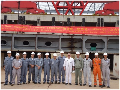 船東建造的64000噸散貨輪(HT64-151)成功舉行上臺儀式,新韓通總經(jīng)理助理圣衛(wèi)兵及船東船檢參加本次儀式。