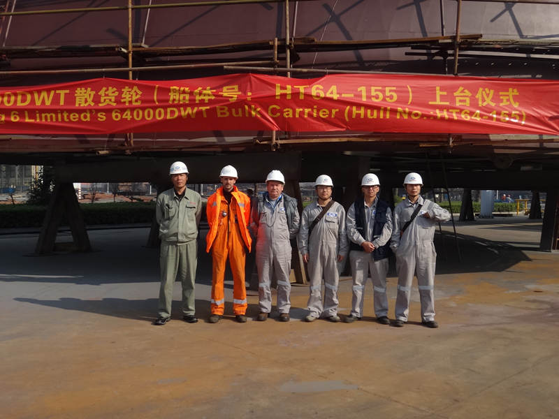 2014年11月20日上午10:28分,新韓通為船東建造的64000噸散貨輪(HT64-155)成功舉行上臺儀式,新韓通總經理助理圣衛兵及船東船檢參加本次儀式。