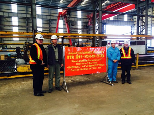 2015年3月10日,新韓通德國船東建造的208000噸散貨輪(HT208-198)成功舉行開工儀式,新韓通總經(jīng)理助理圣衛(wèi)