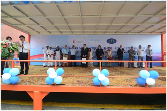 2015年8月13日江蘇韓通船舶重工有限公司迎來(lái)了又一個(gè)值得慶祝和紀(jì)念的日子—HT64-132命名儀式。該船被命名為“SOUTHERNLIGHT”, 入DNV.GL船級(jí)社。公司領(lǐng)導(dǎo)、船東、船檢代表參加了該儀式。儀式結(jié)束后,船東船檢代表等參觀了該船,并給予很高的評(píng)價(jià)。