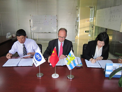 2015年10月12日,我司為NBH和CONTI公司建造的64000噸散貨船(船體號:HT64-154)順利簽字交船,該船入LR船級社。公司領導、船東、貿易公司代表參加該儀式。