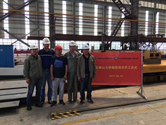 2017年5月10日,新韓通為中鐵九橋公司建造的五峰山大橋錨固項(xiàng)目正式開工。公司領(lǐng)導(dǎo)、中鐵大橋局業(yè)主代表、項(xiàng)目監(jiān)理、駐廠代表參加了開工儀式。