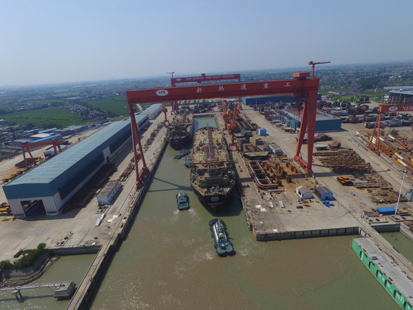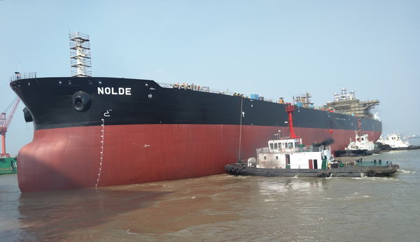 2017年9月17日,我司為歐洲船東CARDIFF建造的兩艘114000噸油輪(船體號:HT-OT115-001/002)順利出塢,該船入ABS船級社。公司領(lǐng)導(dǎo)、船東、船檢代表參加該出塢儀式。
