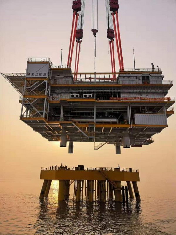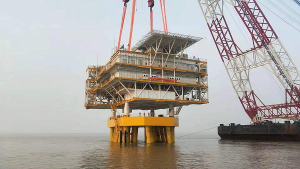 雙創(chuàng)竹根沙項(xiàng)目升壓站海上安裝就位圖