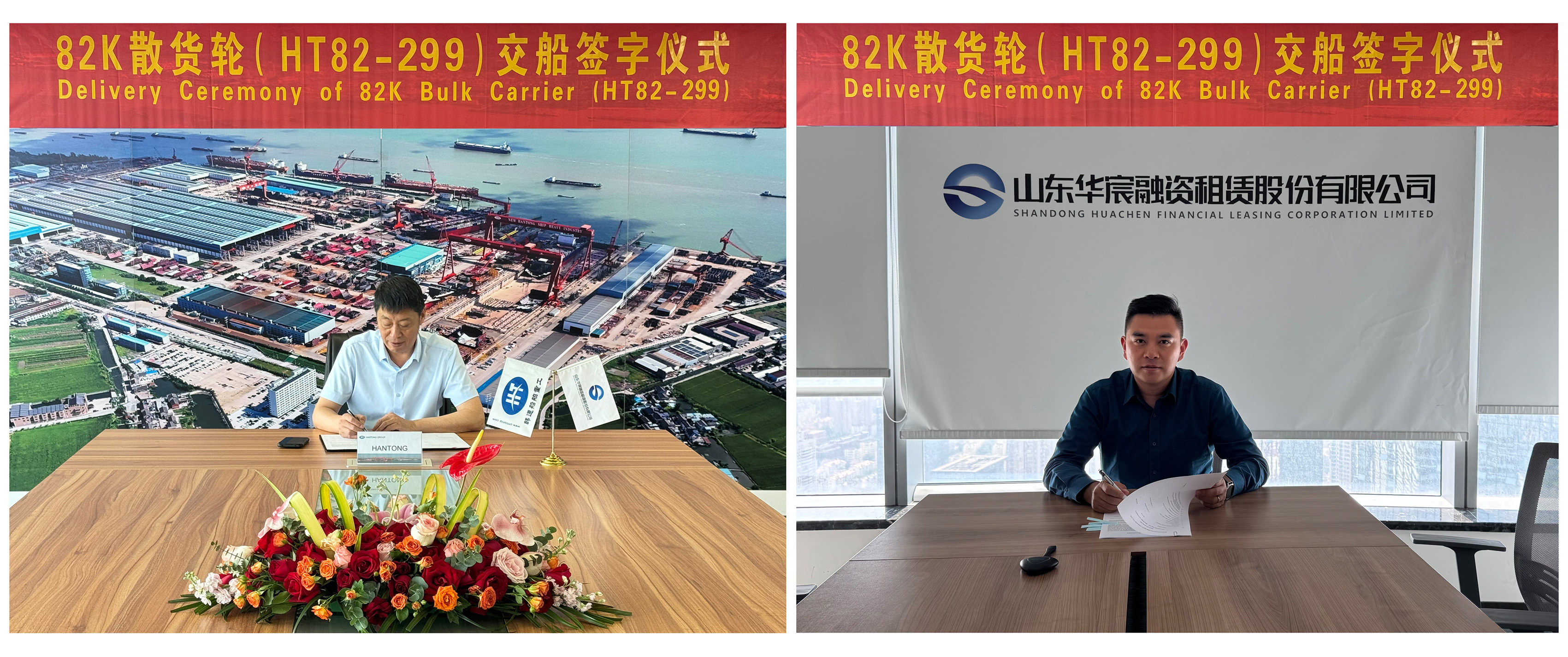 2025年5月28日,在各方代表的共同見證下,我司為華宸船東建造的第10艘82000噸級散貨船(船體編號:HT82-299)“山東鑫澤”輪正式簽字交付。這艘入級中國船級社(CCS)的“海...